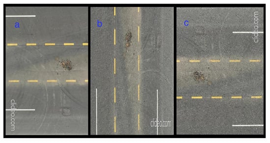 - Pan, Y.; Zhang, X.; Sun, M.; Zhao, Q. Object-based and supervised detection of potholes and cracks from the pavement images acquired by UAV. Int. Arch. Photogramm. Remote Sens. Spat. Inf. Sci. 2017, 42, 209–217. [Google Scholar] [CrossRef]