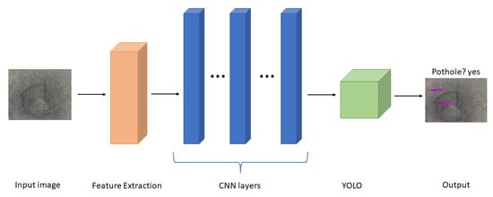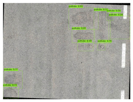 The performances of three different YOLO versions—YOLOv4, YOLOv4-tiny, and YOLOv5—were evaluated and compared in [20]. The dataset in this study consisted of 665 images taken by smartphone cameras. After training and validation, the models’ performances were evaluated by mean average precision (mAP) at 50%, and the result for YOLOv4 was 77.7%, while YOLOv4-tiny was 78.7% and YOLOv5 was 74.8%. The results showed that YOLOv4-tiny was the best at detecting potholes.