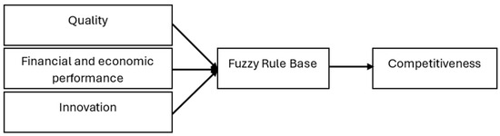 The modeling of the fuzzy expert subsystem aimed at evaluating competitiveness capabilities draws upon theoretical studies. The key input variables identified include product quality, financial and economic performance, and product innovation, each assessed through nine linguistic variables. Figure 1 illustrates the methodology employed by the fuzzy expert subsystem in evaluating competitiveness capabilities.