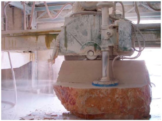 Preceded by China, India, Turkey, Iran, and Brazil, in 2018, Italy ranked sixth as a producer of stone materials worldwide, with volumes totaling 6 million tons, accounting for almost 4% of the market share [19]. The extraction and processing of stone involve two primary mechanical treatments, namely the ashlar-size cutting and the surface grinding-polishing. These mechanical operations generate a considerable amount of various types of waste having the same chemical composition but different sizes. The stone wastes can be categorized into two types: (i) large scraps and debris, and (ii) sawdust sludge with a solid content of less than 10 percent in mass. This latter one is produced by using water for lubrication, cooling of tools with diamond blades, and dust abatement in workplaces. Sawdust sludge undergoes an initial sedimentation process, raising the percentage of solid matter to 30–35% with the recovery of the aqueous fraction in the production cycle. The subsequent process of filter pressing increases the content of solid matter up to 70–75% and originates a waste, known as marmettola (SWS), which is taken to a landfill or used to fill decommissioned quarries.