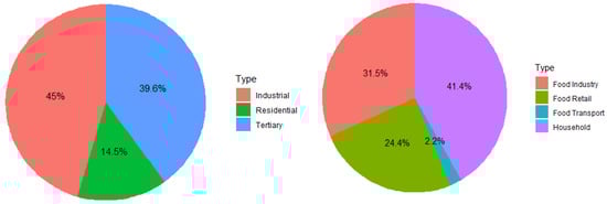 For food processing, food transport, and food retail, the greenhouse gas emissions were calculated by applying the IPCC Tier 1 formula [1,8], as follows: