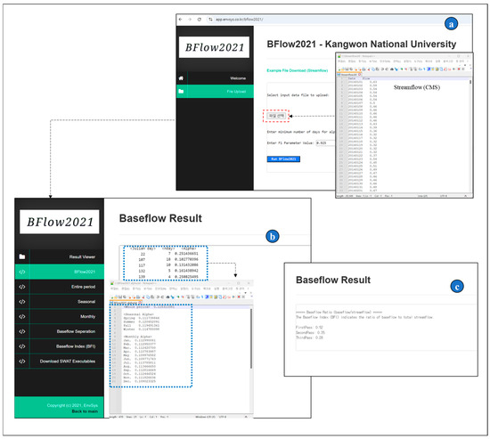 Overview and menu of BFlow2021: (a) Input menu, (b,c) Output menu [28].