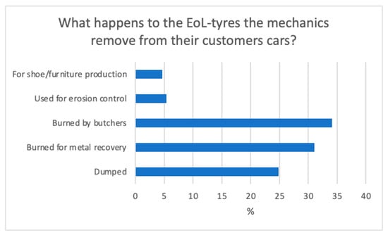 - Mmereki, D.; Machola, B.; Mokokwe, K. Status of waste tires and management practice in Botswana. J. Air Waste Manag. Assoc. 2019, 69, 1230–1246. [Google Scholar] [CrossRef] [PubMed]