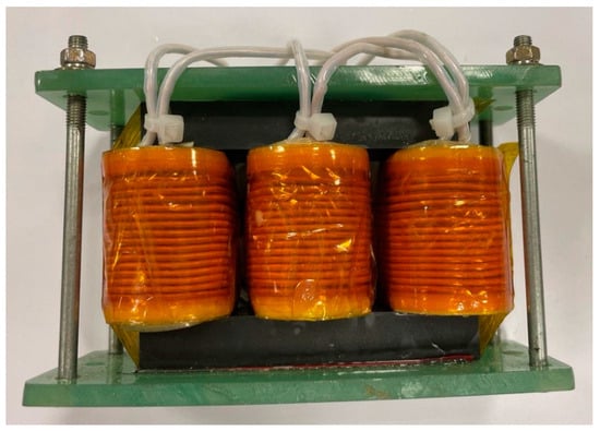 As shown in Figure 7, , are the reluctances of limbs A, B, and C, respectively, and is the reluctance of the core yoke. Each reluctance value was calculated using Equation (17), while Equations (18)–(20) were used to calculate the phase equivalent reluctances. The of each core limb was then calculated as follows: