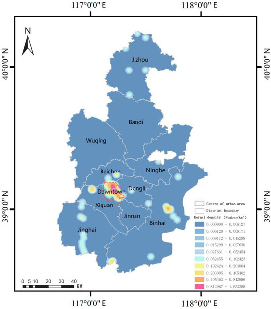 Regional kernel density distribution of Tianjin’s industrial heritage.