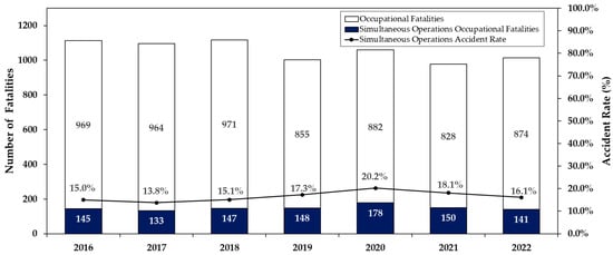 Occupational fatalities and the proportion of occupational fatalities due to SIMOPS during 2016–2022.