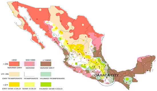 - SMN Normales Climatológicas, Comisión Nacional Del Agua. Available online: https://smn.conagua.gob.mx/tools/RESOURCES/Normales_Climatologicas/Normales9120/oax/nor9120_20079.txt (accessed on 26 October 2024).