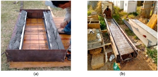 Preparation of prefabricated channels: (a) for the walls and (b) for the roof.