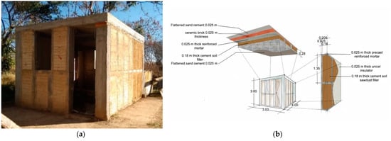 In this work, the authors evaluated the thermal performance through measurements of thermal time lag and decrement factor in a modular full-scale eco-friendly prototype house (MHTITCA) of a novel prefabricated channel based on reinforced mortar filled with soil–sawdust fiber–cement combined with insulation to maximize thermal comfort and stability. The authors of this paper decided to carry out thermal monitoring in situ on a full-scale dwelling to measure temperature values coming from the heat transmission mechanisms present (radiation, conduction, and convection). Thus, the technique applied in the present paper is believed to be more realistic. The house prototype design is focused on low-cost housing use, and its performance was compared with three other typical alternative house prototypes.