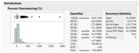 Distribution of percentage of overwatering for all parcels.