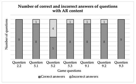In addition to the game analysis, it is also essential to identify and evaluate the challenges associated with the exploration of AR content. Figure 7 presents a comparison of the number of groups that correctly or incorrectly answered each question relating to AR.