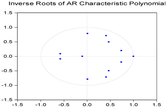 Figure 7 illustrates the inverse of the Autoregressive (AR) characteristic polynomial, which is fundamental in time series analysis for describing how past values influence the current value of a series. The inverse polynomial reveals the roots of the AR model and their implications for its behavior and stability. In Figure 5, if all inverse roots are within the unit circle, as observed, it indicates that the time series model is stable. This stability is crucial as it ensures the model can reliably generate consistent forecasts over time. Given our findings, where this stability criterion is satisfied, we can confidently proceed with using the model for forecasting and further analysis.