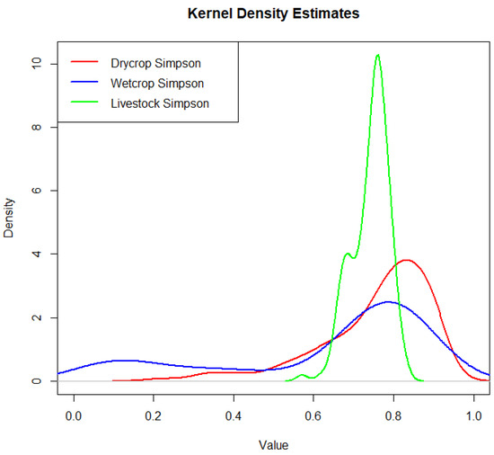5.1.2. Estimation of Kernel Density with the Agriculture Diversification Index