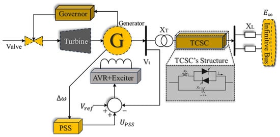 - Wang, L.; Liang, H.R.; Prokhorov, A.V.; Mokhlis, H.; Huat, C.K. Modal Control Design of Damping Controllers for Thyristor-Controlled Series Capacitor to Stabilize Common-Mode Torsional Oscillations of a Series-Capacitor Compensated Power System. IEEE Trans. Ind. Appl. 2019, 55, 2327–2336. [Google Scholar] [CrossRef]