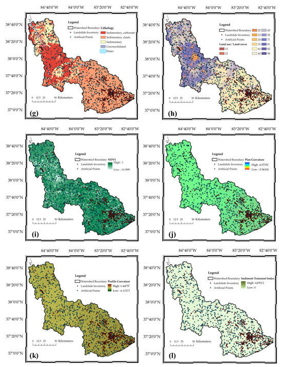 In this research, a total of 16 factors, e.g., aspect, curve number, distance to faults, distance to river, elevation, intense precipitation, land use/land cover, lithology, normalized difference vegetation index (NDVI), plan curvature, profile curvature, sediment transport index (STI), slope, stream density, topographic roughness index (TRI), and topographic wetness index (TWI), having the potential to influence the mechanisms underlying landslide formation, are investigated, as addressed in the literature. These factors were selected since they cover a variety of topographical (e.g., slope and elevation), geological (e.g., lithology and distance to faults), hydrological (e.g., stream density and TWI), and environmental (e.g., land use and NDVI) features of a specific area. These factors may affect the processes that are associated with the formation of landslides, such as the stability of soil and erosion. Hence, by incorporating a variety of factors, the multi-dimensional nature of landslides is addressed in a generic view.