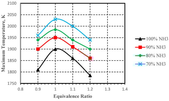 Maximum temperature with different equivalence ratios and hydrogen additions ratios [15].