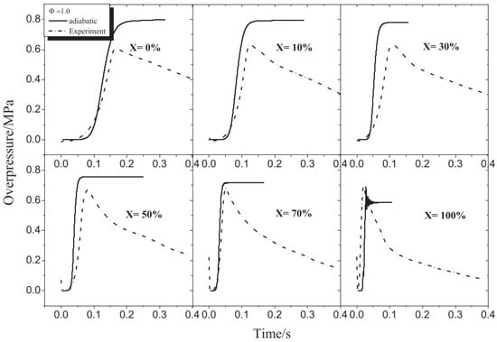 Comparison of the measured and calculated adiabatic overpressure histories of stoichiometric methane–hydrogen mixture [24].