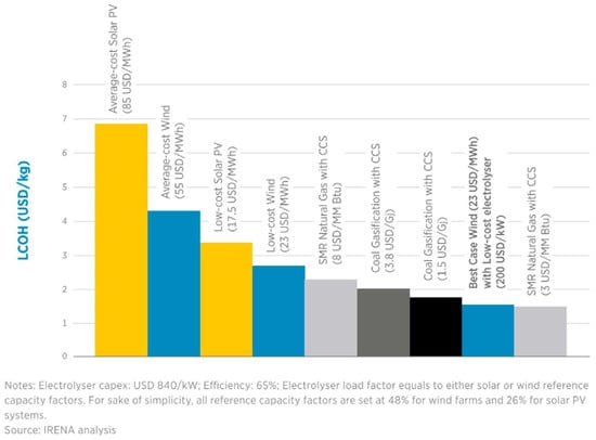 Hydrogen production cost for renewable and non-renewable energies in 2019 [53].