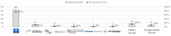 The global predominance of Revit (Figure 6) may be associated with several advantages offered by this tool compared to other BIM software, such as its customisation capabilities and versatility. Among these advantages, the adaptation of standardised materials and parameters to the specificities of the project, as well as the high and powerful level of object parameterisation provided by Revit, is particularly noteworthy [55,97,98,99].