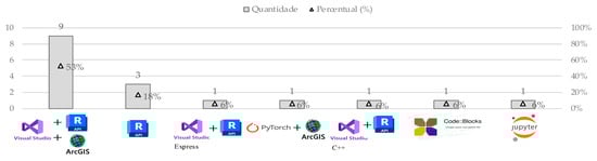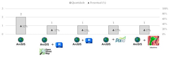 In this context, only six studies demonstrate the use and effectiveness of GIS-BIM integration in different applications (Figure 11). For instance, Ref. [118] used ArcGIS and Pix4D to produce a digital orthophoto map (DOM) using a UAV photogrammetry-based method for 3D detection of height and volume changes in CDW accumulations on urban land. Similarly, Ref. [161] applied ArcGIS and LabelMe to perform raster image segmentation from UAV imagery, focusing on dividing remote sensing images for training CDW accumulation identification and classification. On the other hand, Ref. [72] developed an integration model between GIS and BIM to optimise supply chain management. In this model, ArcGIS software was employed for route analysis, evaluating the distance and time required to transport materials from the supplier to the construction site. Additionally, the Python module available in ArcGIS was used to calculate the optimal number of purchase orders, as well as the quantity and appropriate timing for each order. The visual representation of the logistics process was facilitated through maps. Moreover, the incorporation of mathematical scripts, JavaScript, and VBScript in the ArcGIS environment enabled the comparison of alternatives.
