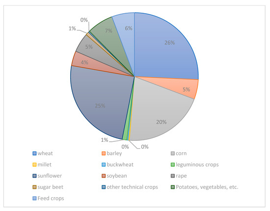 Structure of sown areas of Ukraine, 2021. Source: Agriculture of Ukraine. Statistical Bulletin for 2021 [39].