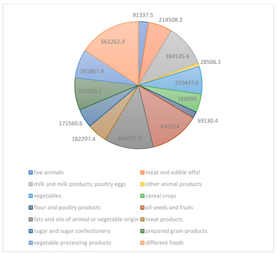 Structure of imports of agricultural and food products. Source: Calculated by the author according to the Statistical Collection “Agriculture of Ukraine” 2020 [39].