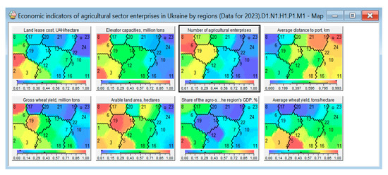 The Kohonen neural network method can be used to cluster the agricultural sector of Ukraine. To achieve the goal of this study, the clustering of Ukraine’s agricultural sector included entities that are engaged both in the production and sale of their products. The primary criteria for clustering included the capability to store agricultural products, transportation logistics to ports (either by road or rail), crop yields, and military risks [36].