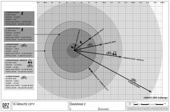 - Duany, A.; Steuteville, R. Defining the 15-Minute City. Available online: https://www.cnu.org/publicsquare/2021/02/08/defining-15-minute-city (accessed on 1 October 2024).