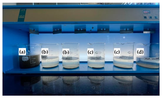 - De Paula, H.M.; de Oliveira Ilha, M.S.; Sarmento, A.P.; Andrade, L.S. Dosage optimization of Moringa oleifera seed and traditional chemical coagulants solutions for concrete plant wastewater treatment. J. Clean Prod. 2018, 174, 123–132. [Google Scholar] [CrossRef]