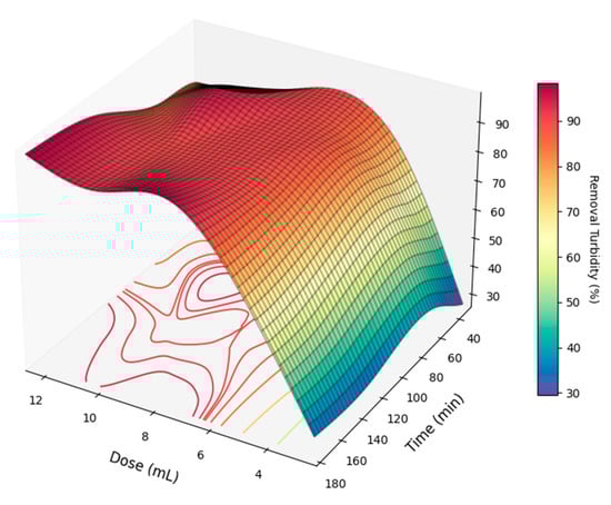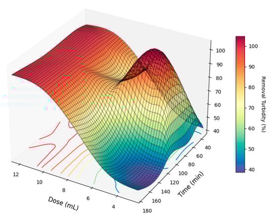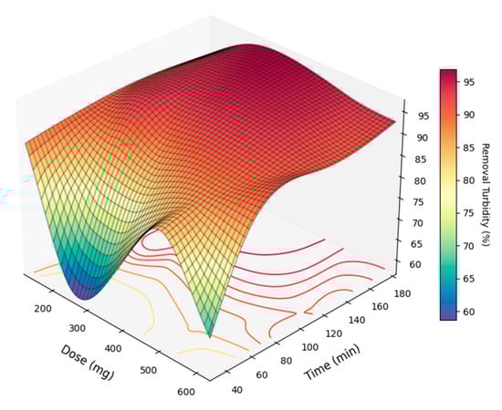 Response surface for turbidity removal with M. oleifera in distilled water (MODW).