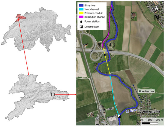 This research focuses on the Dynamo hydroelectric scheme, located along the Birse river in Courrendlin (Figure 1). The catchment area has a “jurassien” pluvio-nival regime type, although recent data shows a disappearance of the spring peak discharge due to climate change inducing less snow accumulation in winter [12].