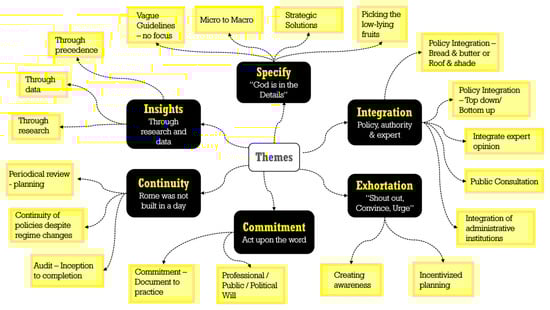 The thematic coding results provide ‘meanings implied’ and insights into the nature of the current planning environment and strategies to integrate climate-sensitive planning into the overall urban planning process. The themes and subthemes generated from the analysis are depicted in Figure 2 below.