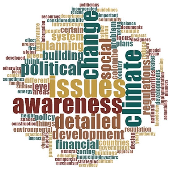 We combined all the interview scripts, ran a query for the 250 most frequently occurring words, and generated word art (Figure 3). The emphasis is clearly on the need for ‘awareness’ and ‘detailed plans’, further reinforcing the idea of social and political influences in urban climate actions.