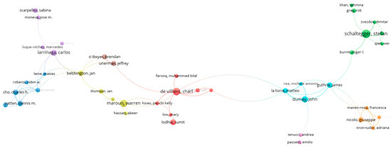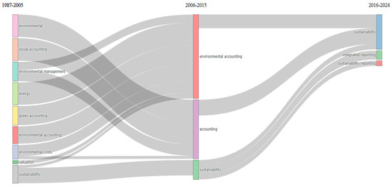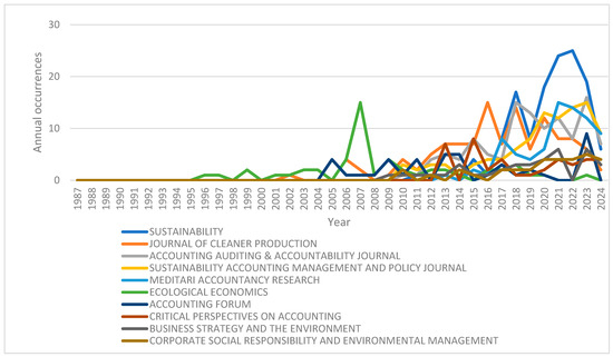 Detailing the analysis of the scientific activity of the most productive authors, we find that in the case of Schaltegger S., out of the 27 articles written by him, most were published in 2006 (N = 4), followed by 2023 (N = 3); for de Villiers, the most productive year was 2002 (N = 4), and in each of the years 2015, 2017, 2021, and 2024, he produced three articles annually; finally, Maroun’s most prolific year was 2018 (N = 7), followed by 2017 with 5 articles published.