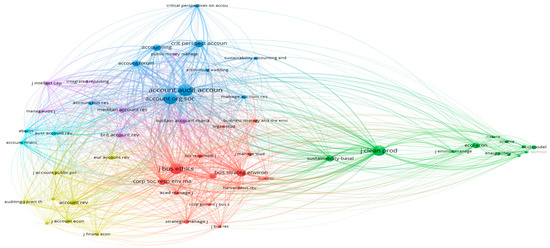 As can be seen from Table 4, the first three positions are occupied by Sustainability with 133 published documents (5.20%), Journal of Cleaner Production with 118 documents (4.62%), and Accounting Auditing & Accountability Journal with 113 documents (4.42%). Practically, of the 10 journals included in this ranking, only 5 have specific purposes and spheres related to the field of accounting. The other five address sustainability issues in general, which suggests the complex and multidisciplinary nature of the research field that is the subject of our study.