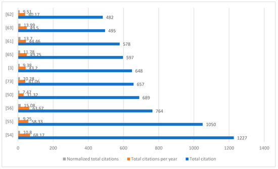 The third stage consisted of processing the collected data and visualizing the results. To go through this stage, specific software for bibliometric analysis was used. Thus, Microsoft Excel 2016 was used for the graphical representation of some results of the WoS query, while for data processing and visualization of the results, we used Bibliometrix R-package version 4.3.0, which provides a set of tools for quantitative research in bibliometrics and scientometrics [45], and VOSviewer version 1.6.20, which is a software developed for building and visualizing bibliometric maps [46]. By combining Bibliometrix and VOSviewer, we managed to amplify the process of conducting bibliometric analyses and informative visual representations of the collected data [47].