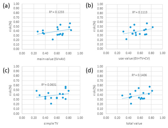 The fourth step represents a preliminary analysis of mutual relationships between an assessment of the geotourist and geoeducational potential and the risk assessment results. This is performed by comparing relative values (main values vs. risk; use values vs. risk; simple tourist value vs. risk; total value vs. risk). The results of this simple analysis may show the intensity of relationships. However, the authors are aware that this approach has its limits (e.g., simplification) and needs to be more properly developed in the future (e.g., in relation to multicriteria analysis or advanced statistical methods). Within this research, it is mainly used as a supporting method, the main emphasis is on the geotourist and geoeducational potential and evaluation of threats.
