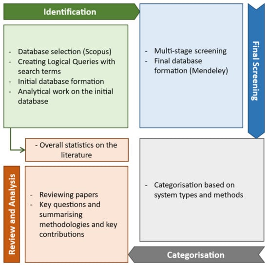 Given the expansive scope of research in this field, this paper will focus on articles and reviews published in peer-reviewed journals after 2020. After applying manual further screening and eligibility criteria over the 507 papers, a total number of 127 papers were identified to include any keywords directly associated with a type of PtX system. Finally, 53 papers were selected as the most relevant for detailed review and included in the reviewing process, using Mendeley Desktop Software Version 1.19.8. Besides these included studies, several other references are cited in this study for their contribution to more general subjects related to sustainable development of energy, PtX, and ML.