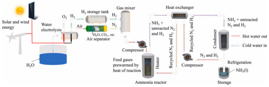 - Ahbabi Saray, J.; Gharehghani, A.; Hosseinzadeh, D. Towards Sustainable Energy Carriers: A Solar and Wind-Based Systems for Green Liquid Hydrogen and Ammonia Production. Energy Convers. Manag. 2024, 304, 118215. [Google Scholar] [CrossRef]