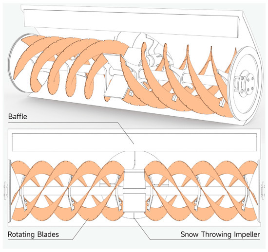 - Ease of operation and adaptability. To accommodate different application scenarios and enhance the mobility and flexibility of the equipment, a wheeled structure is adopted. To achieve a stable and efficient uninterrupted snow supply, a rotating centrifugal impeller is selected for the transmission structure. The combined solutions are reduced to 8 types;