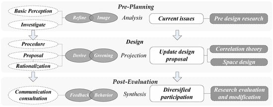 The pre-planning and post-evaluation (PPPE) framework (Figure 1) is central to implementing research by design effectively [34] (Figure 1). Currently, the PPPE framework emphasizes a closed-loop cycle of planning, design, and evaluation, urging practitioners to focus on enhancing overall design effectiveness [28,30,34]. Scholars differentiate between evaluation and critique, asserting that evaluation must rely on quantifiable data such as subjective assessment metrics suitable for semantic analysis, while critique often reflects subjective viewpoints, introducing greater uncertainty [35,36]. Thus, the PPPE approach ensures comprehensive project management from inception to completion, fostering sustainable and effective design solutions in rural contexts.