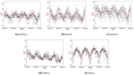 Seasonality significantly influences the variation in the air pollutant levels. Typically, air pollutant concentrations are higher in the winter and spring seasons, except for ozone (see