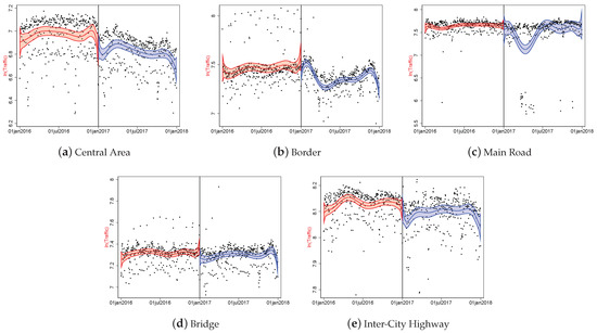Figure 2). These data were collected over a two-year period between 2015 and 2018, encompassing the time before and after the implementation of the LEZ policy on 1 January 2017.