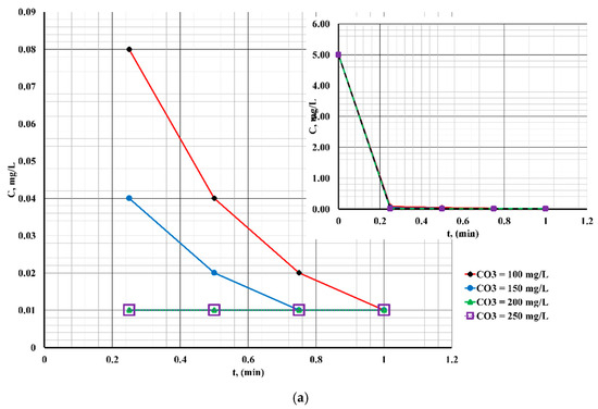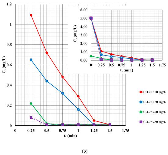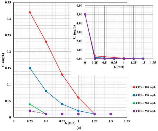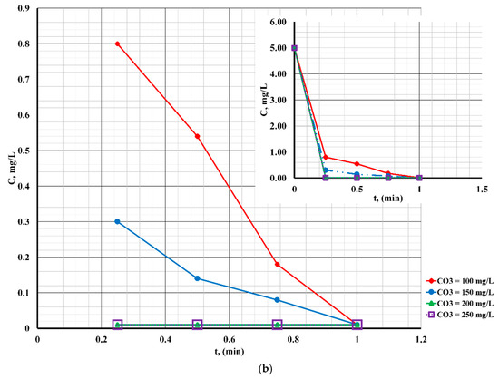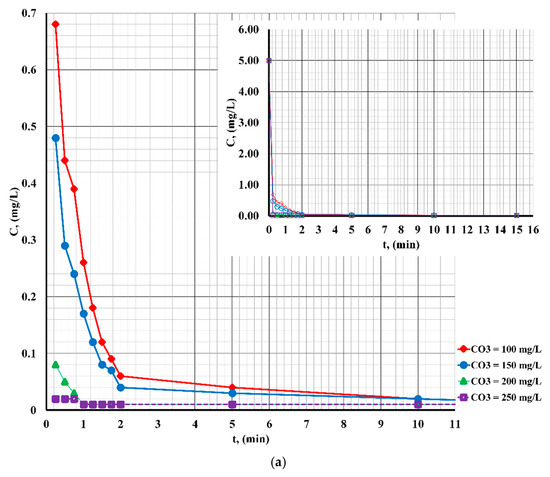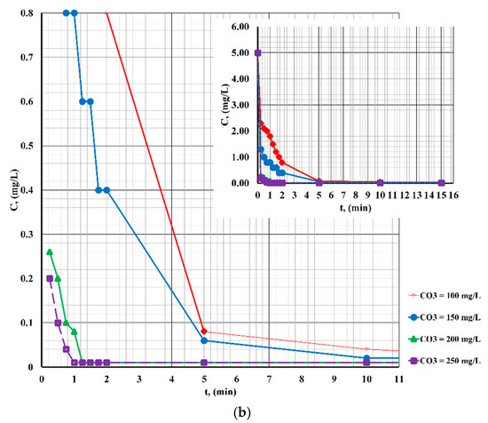 - at different contact times (0–10 min at pH = 7; 0–1.5 min at pH = 4; and 0–1 min at pH = 10);