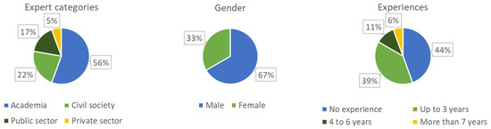 - Basic information on survey respondents (sector, gender, and level of expertise). The questions were closed and answers could be selected from a predefined set of answers.