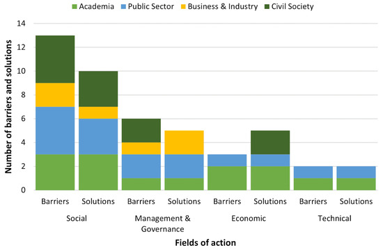 3.2. Barriers, Solutions, and Solution Pathways from Different Institutional Perspectives
