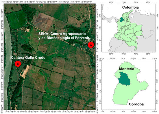 (A) El Porvenir Agricultural and Biotechnology Center—SENA; (B) Gallo Crudo Quarry.