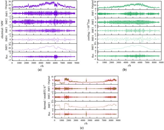 - The preprocessed multi-variate load IMF sets are combined with the meteorological information and related load data to build the input and output samples for electrical, thermal, and cooling loads;