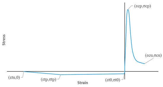 The tensile behavior considered by this model is represented by a linear region starting from zero up to a tensile strength , and the stress–strain curve can be calculated as