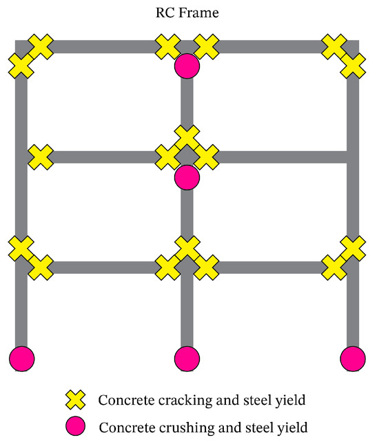 Damage locations in the RC frame.